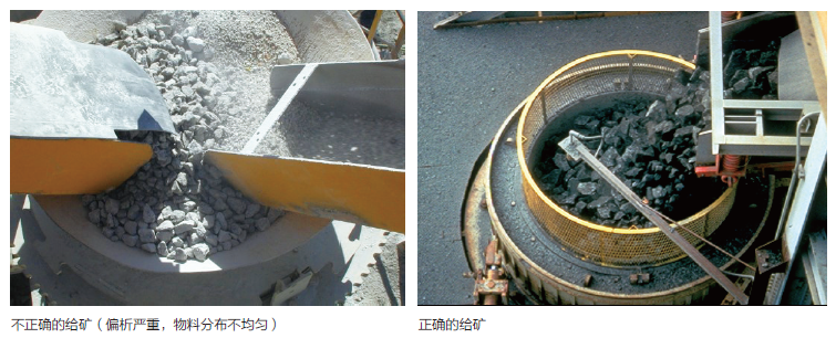 04. 在破碎腔360°范圍內(nèi)給料分布均勻