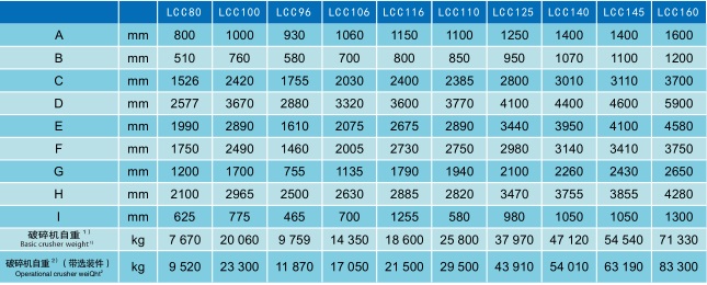 以上數(shù)據(jù)所表示的破碎機(jī)產(chǎn)量,是針對平均比重為 2.7t/m 3 ,給料能夠順利進(jìn)入破碎腔、無架橋卡堵現(xiàn)象,給料剔除小于排礦口細(xì)料時取小值,含細(xì)料時取大值。產(chǎn)量可能隨給料方式和物料性質(zhì)諸如粒度組成、含水含泥量、松散密度和可碎性而變化。