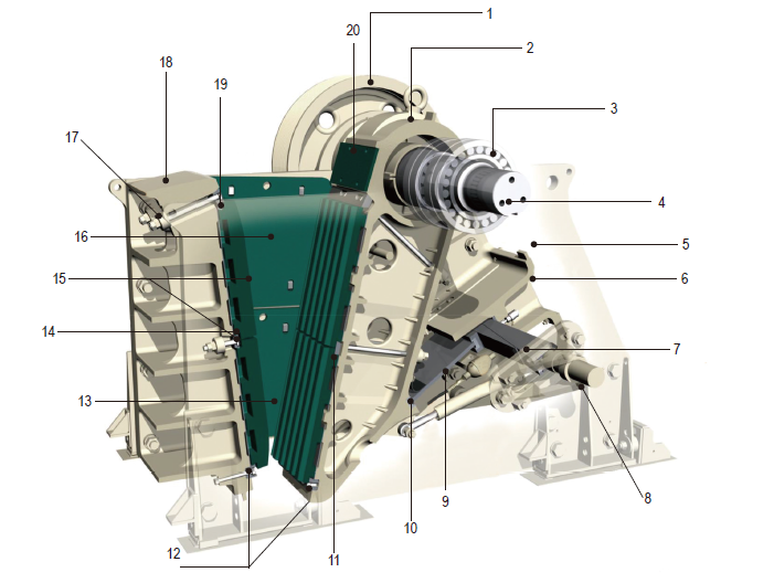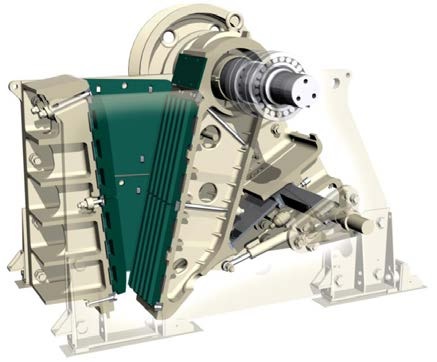 LCC 系列顎式破碎機(jī)都裝備有雙楔塊排礦口調(diào)整系統(tǒng),其堅固且調(diào)整快捷的優(yōu)勢在行業(yè)內(nèi)已經(jīng)得到證明,該系統(tǒng)在對于由于供電中斷導(dǎo)致系統(tǒng)帶負(fù)載停機(jī)而需要清腔時尤其有效;橡膠減震裝置和限位塊可以吸收震動峰值載荷,并允許破碎機(jī)垂直和縱向位移,從而有效地降低破碎機(jī)對基礎(chǔ)的沖擊;電機(jī)機(jī)座與破碎機(jī)機(jī)架一體安裝,減少了破碎機(jī)安裝空間和 V 形帶的長度。