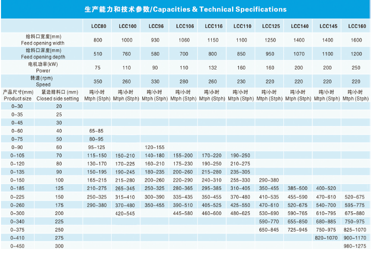 LCC 系列顎式破碎機(jī)采用了獨(dú)特的模塊式、無焊接框架結(jié)構(gòu),兩塊熱軋鋼側(cè)板通過精密加工的緊固螺栓與高質(zhì)量鑄鋼機(jī)架牢固地栓接在一起;動顎總成采用高質(zhì)量的鑄鋼件構(gòu)成,通過兩個大型鑄鋼飛輪傳動;鍛造的重型偏心軸和四個同等規(guī)格的大型球型滾動軸承,使之具有超凡的可靠性;迷宮式密封保護(hù)軸承中的潤滑油脂不被污染;整體鑄鋼軸承箱能夠保證與破碎機(jī)架完全配合,并且還能避免對軸承架造成過大的負(fù)荷。