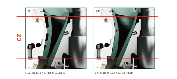 樂(lè)礦 LCG 系列圓錐破碎機(jī)可以針對(duì)不同的生產(chǎn)要求輕松調(diào)整腔型,通過(guò)選擇不同的破碎腔型,同一臺(tái)破碎機(jī)可用于破碎生產(chǎn)過(guò)程中的第2 段、第3 段或第4 段,以生產(chǎn)不同尺寸的最終產(chǎn)品。通過(guò)沖程更換功能可以輕松地對(duì)破碎機(jī)物料通過(guò)量進(jìn)行調(diào)整,以便與其他破碎設(shè)備的運(yùn)轉(zhuǎn)相協(xié)調(diào)。LCG 系列圓錐破碎機(jī)廣泛的適用性得益于同一主機(jī)結(jié)構(gòu)可以通過(guò)更換襯板來(lái)獲得不同破碎腔型,因而能夠根據(jù)破碎流程的變化來(lái)調(diào)整破碎機(jī)的腔型,適用性更廣。