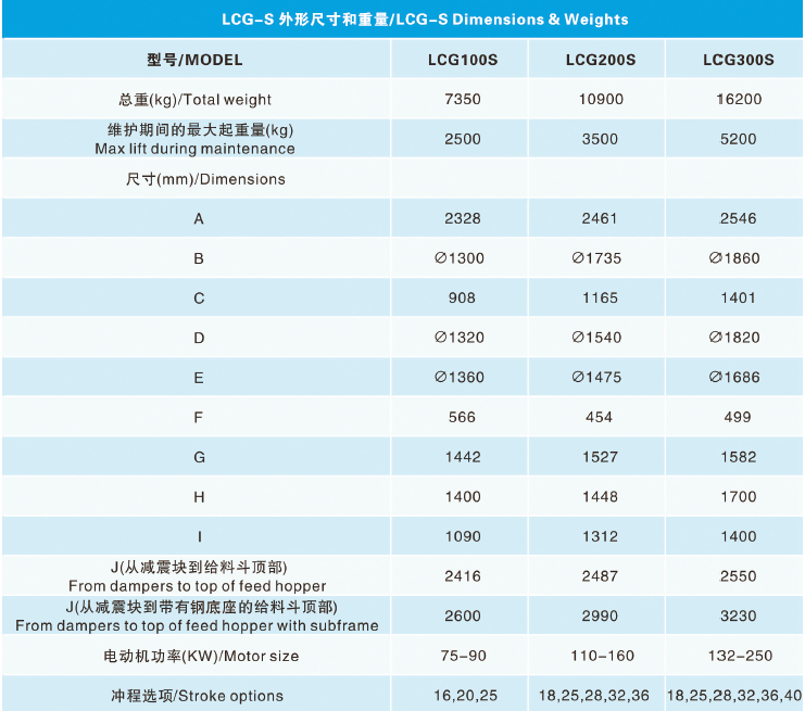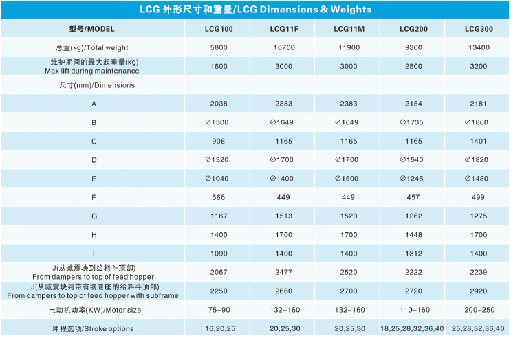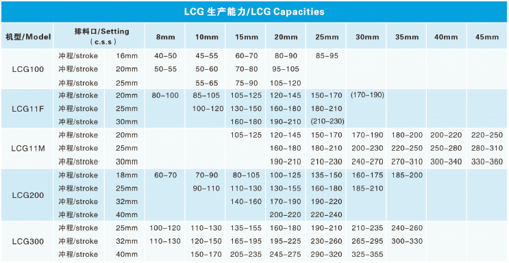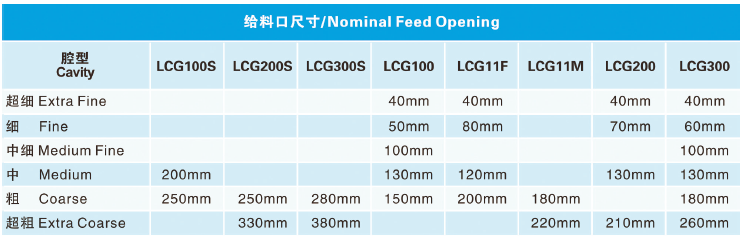 樂(lè)礦LCG 系列圓錐破碎機(jī)代表了先進(jìn)的破碎機(jī)技術(shù),破碎效率更高,生產(chǎn)成本更低,破碎產(chǎn)品質(zhì)量更優(yōu)秀,能夠充分適應(yīng)各種破碎工況,即便是極其堅(jiān)硬的巖石也能夠應(yīng)付自如。對(duì)于石料或礦山行業(yè),要求破碎設(shè)備產(chǎn)量高、產(chǎn)品粒型優(yōu)良、機(jī)動(dòng)性好,LCG 系列圓錐破碎機(jī)不但能夠滿(mǎn)足這些要求,而且能夠使破碎流程更加順暢,實(shí)現(xiàn)破碎流程的全自動(dòng)化。LCG- S 系列中碎圓錐破碎機(jī)有3 種標(biāo)準(zhǔn)機(jī)型,可配置出6 種不同的破碎腔型;LCG 系列細(xì)碎圓錐破碎機(jī)有5 種標(biāo)準(zhǔn)機(jī)型,可配置出20 余種不同的破碎腔型。